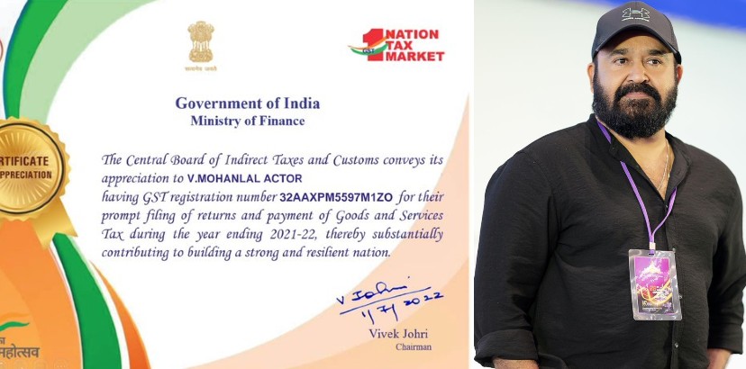 ‘ജി എസ് ടി നികുതികള് കൃത്യമായി ഫയല് ചെയ്യുകയും അടയ്ക്കുകയും ചെയ്തതിന് കേന്ദ്ര ധനകാര്യ മന്ത്രാലയത്തിന്റെ കീഴില് വരുന്ന സെന്ട്രല് ബോര്ഡ് ഓഫ് ഇന്ഡയറക്ട് ടാക്സ് ഒരു അഭിനന്ദന സര്ട്ടിഫിക്കറ്റ് നല്കിയിട്ടുണ്ട്. അവരുടെ അഭിനന്ദനത്തിന് ഞാന് ഇന്ത്യന് സര്ക്കാരിന് നന്ദി പറയുന്നു. രാഷ്ട്രനിര്മ്മാണത്തിന്റെ ഭാഗമാകാനും നിങ്ങള്ക്കൊപ്പം നടക്കാനും അനുവദിച്ചതിന് നന്ദി. ഇന്ത്യക്കാരനായതില് അഭിമാനിക്കുന്നു. ജയ് ഹിന്ദ്!’-മോഹന്ലാല് കുറിച്ചു.