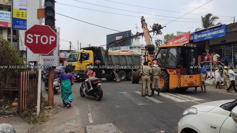 പോസ്റ്റുമായി ലോറി മുന്നോട്ടു നീങ്ങിയതും, വൻ ശബ്ദത്തോടെ വൈദ്യുത കമ്പികൾ പൊട്ടി വീഴുകയായിരുന്നു. ഇന്ന് രാവിലെ 11 മണിയോടെയായിരുന്നു അപകടം. സ്കൂൾ അവധിയായതിനാലും, സമയം ഉച്ചയോടു അടുത്തതിനാലും വൻ ദുരന്തം വഴിമാറുകയായിരുന്നു . കഞ്ഞിക്കുഴി മൗണ്ട് കാർമൽ സ്കൂൾ കുട്ടികൾ ബസ് കാത്തു കൂടി നിൽക്കുന്ന സ്ഥലമാണ് ഇത്.