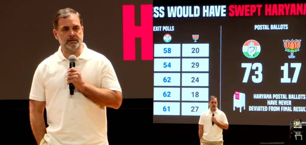 ‘രാജ്യം മുഴുവന് തട്ടിപ്പ് നടന്നു. ഹരിയാന എക്സിറ്റ് പോള് കോണ്ഗ്രസിന് അനുകൂലമായിരുന്നു. പോസ്റ്റല് ബാലറ്റില് 73 സീറ്റ് കോണ്ഗ്രസിനും 17 സീറ്റ് ബിജെപിക്കുമായിരുന്നു. വീണ്ടും വീണ്ടും പരിശോധിച്ചാണ് അന്തിമ നിഗമനത്തിലേക്ക് എത്തിയത്. യുവാക്കളായ ജെന്സി വിഭാഗം അവരുടെ ഭാവി എന്താണെന്ന് തിരിച്ചറിയണം’, രാഹുല് ഗാന്ധി പറഞ്ഞു.