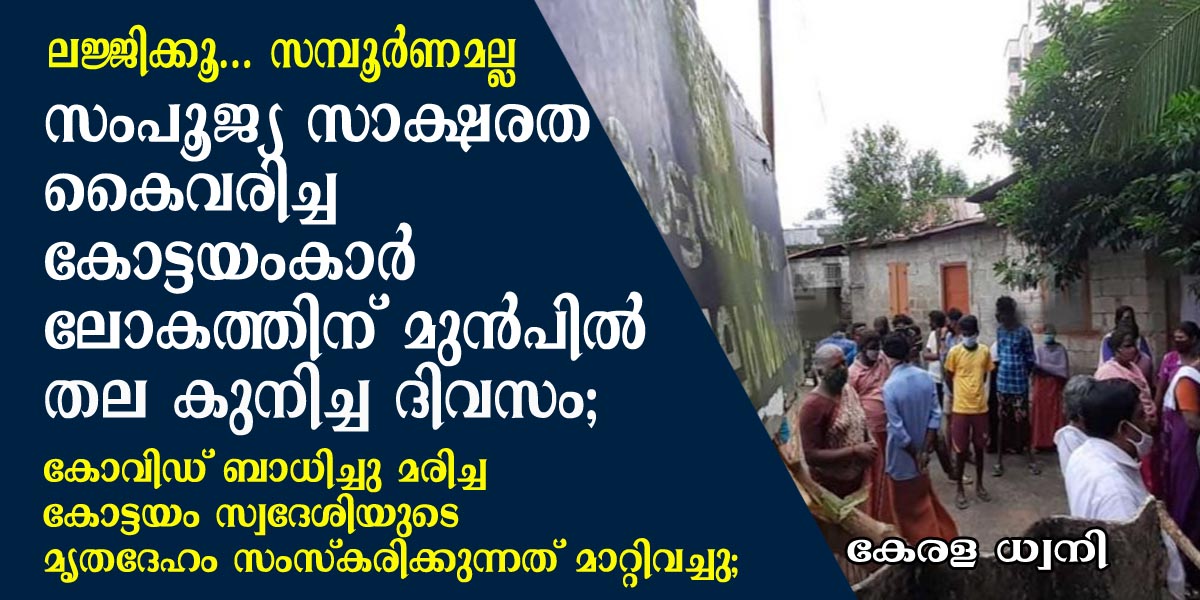 ലജ്ജിക്കൂ… സമ്പൂർണമല്ല, സംപൂജ്യ സാക്ഷരത കൈവരിച്ച കോട്ടയംകാർ ലോകത്തിന് മുൻപിൽ തല കുനിച്ച ദിവസം; കോവിഡ് ബാധിച്ചു മരിച്ച കോട്ടയം സ്വദേശിയുടെ മൃതദേഹം സംസ്കരിക്കുന്നത് നാട്ടുകാർ തടഞ്ഞു; സംഘർഷത്തെ തുടർന്ന് സംസ്കാരം മാറ്റി വെച്ചു