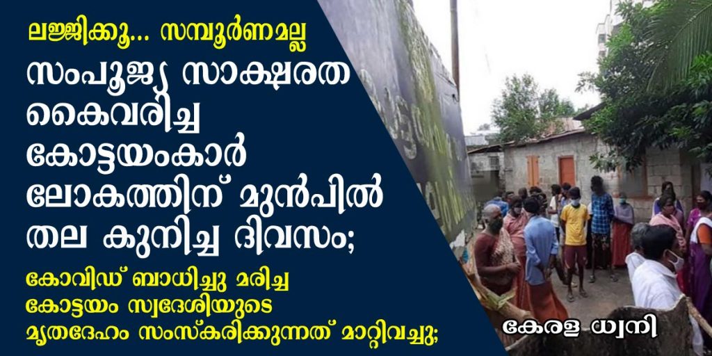 ചുങ്കം സിഎംഎസ് കോളജ് ഭാഗം നടുമാലിൽ ഔസേഫ് ജോർജ് (83) ആണ് ഇന്നലെ രാത്രി കോവിഡ് പോസിറ്റീവായി മെഡിക്കൽ കോളജ് ആശുപത്രിയിൽ മരിച്ചത്. കൊവിഡാണെന്നു മരണ ശേഷമാണ് സ്ഥിരീകരിച്ചത്. ഇതേ തുടർന്നു, ഇദ്ദേഹത്തിന്റെ സമ്പർക്കപ്പട്ടികയിൽ ഉൾപ്പെട്ടിരുന്ന നാലോളം ആളുകളോട് ക്വാറന്റനിയിൽ പോകാൻ നിർദേശം നൽകിയിട്ടുണ്ട്.
