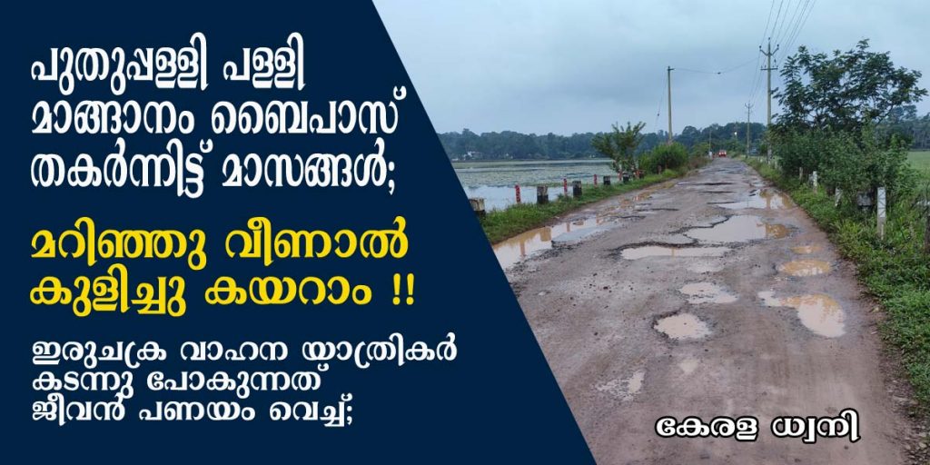കോട്ടയം: പുതുപ്പള്ളി പള്ളി കോട്ടയം ബൈപാസ്സ് റോഡ് തകർന്നിട്ട് മാസങ്ങളാകുന്നു. വാഹന യാത്രക്കാർ ജീവൻ പണയം വെച്ചാണ് ഇതുവഴി സഞ്ചരിക്കുന്നത്. റോഡിനിരുവശവും പാടത്താൽ നിറഞ്ഞ ഈ പ്രദേശത്തു വാഹനം അപകടത്തിൽ പെട്ടാൽ പാടത്തേക്ക് മറിയുക തന്നെ ചെയ്യും എന്ന് ഏതാണ്ട് ഉറപ്പാണ്.