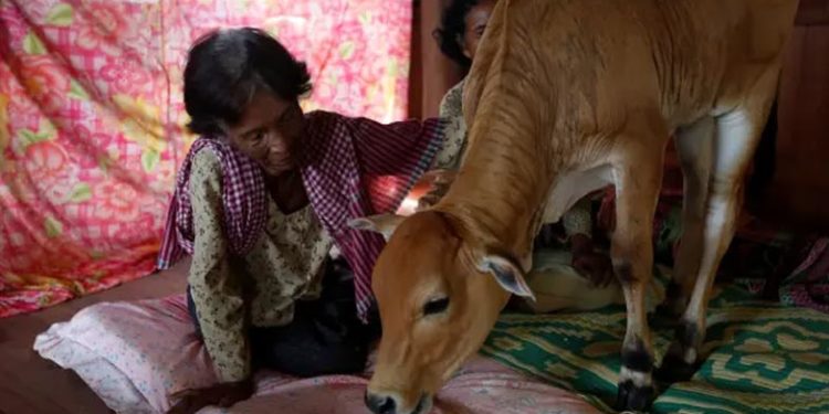 പശുവിനെ വിവാഹം ചെയ്ത സ്ത്രീയാണ് ഇന്ന് വാര്‍ത്തകളില്‍ ഇടംപിടിക്കുന്നത്. കംബോഡിയയിലെ വടക്കുകിഴക്കന്‍ ക്രാറ്റി പ്രവിശ്യയില്‍ താമസിക്കുന്ന 74 കാരിയായ ഖിം ഹാങ് ആണ് പശുവിനെ വിവാഹം ചെയ്തത്. കാരണമാണ് ഏവരെയും അമ്പരപ്പിക്കുന്നത്. തന്റെ മരിച്ചുപോയ ഭര്‍ത്താവിന്റെ പുനര്‍ജന്മമാണെന്ന് അവകാശപ്പെട്ടാണ് ഇവര്‍ പശുവിനെ വിവാഹം ചെയ്തത്.