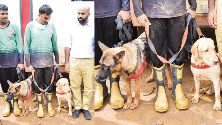 ദു​ര​ന്ത​ഭൂ​മി​യി​ൽ വ​ഴി​കാ​ട്ടി​ക​ളാ​യി ഡോ​ഗ് സ്ക്വാ​ഡു​ക​ൾ; ക​ർ​മ​രം​ഗ​ത്തു​ള്ള​ത് 11 നാ​യ​ക​ൾ